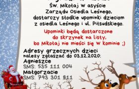 Zarząd Osiedla Leśnego w Koziegłowach poinformował, że również na osiedlu Leśnym i ulicy Piłsudskiego odwiedzi grzeczne dzieci. Więcej informacji w poście Zarządu.