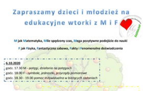 Na portalu Zarząd Osiedla Karolin właśnie pojawił się wpis zapraszający dzieci i młodzież do udziału w zajęciach edukacyjnych z Matematyki i Fizyki. Więcej informacji dostępnych …